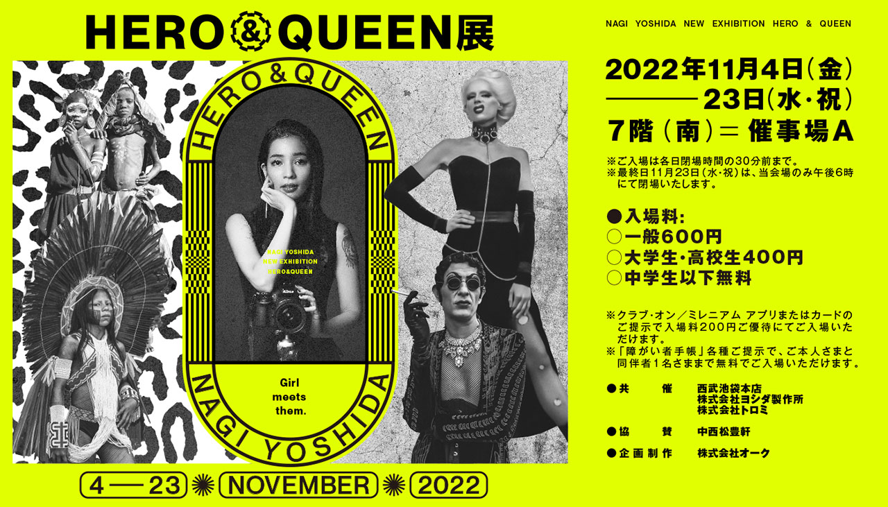 200 を超える先住・少数民族を訪れ、美しく生命力溢れる人々の姿を撮影してきた、写真家ヨシダナギの写真展「NAGI YOSHIDA NEW EXHIBITION ~HERO&QUEEN 展~」が2022 年11 月4 日(金)~23 日まで西武池袋本店7 階で開催される。ファーストピリオドを飾る集大成として、これまで撮ってきた90点以上の作品が一堂に会する必見の展示だ。