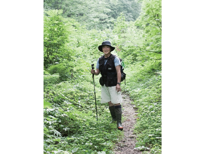 岩手県和賀郡西和賀町、ほっとゆだ駅から県道1号線・下前方面に入り、女神山方面への分岐から林道を5kmほど走って駐車場に到着。山歩きはここから始まった。今回は自然観察を目的とするトレッキング。環境省希少野生動植物種保存推進員である瀬川強さんが案内してくれた。