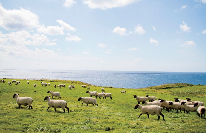 最初に訪れたのは、北海道北部の西海岸・羽幌町の沖合いに浮かぶ島――焼尻島。羽幌港からフェリーで約1時間の場所にある。島の約3分の1が羊たちのための牧草地となっており、ここで600頭もの羊が放牧されている。海に囲まれた広大な敷地で羊が草を食む様子は、まるでスコットランドのようである。この楽園でのびのびと暮らす姿は、静かな島の牧歌的な風景となり、見る者に癒しを与えてくれる。