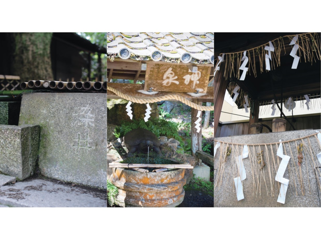 (中):「松尾さん」の名で親しまれる松尾大社境内にある亀の井の水は、「酒を醸造する際に加えると腐らない」ことから、醸造家の信仰を集めた。一般には、茶道・書道の用水として、また家庭用水として愛用される。