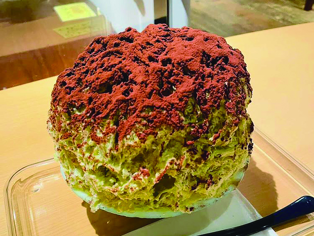 ふわふわのかき氷の中にマスカルポーネジェラート、エスプレッソシロップ、ベリーの赤ワイン煮をしのばせ、濃厚なピスタチオシロップとココアパウダーをたっぷりかけた同店の定番メニュー。イタリアンとかき氷を融合させた、ここでしか味わえないユニークな一品だ。