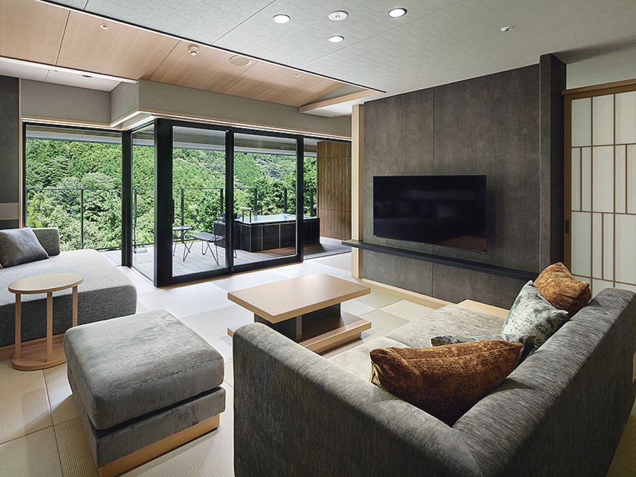 箱根の自然と温泉を思う存分堪能できるラグジュアリーホテル、はつはな。心地よさと機能性を兼ね備えた和モダンの客室には温泉露天風呂を完備するほか、館内にはサウナ付きを含む二つの大浴場に、貸切温泉が4カ所あり、広々とした空間でゆったりとくつろぐことも可能だ。食事は地元神奈川の食材をふんだんに使用した懐石料理を楽しめる。日本古来の湯治治療を一夜に凝縮したオリジナルの湯治セラピーを体験できるリラクゼーションなど施設も充実。美しい景色とこだわりの食事、細やかなもてなしで、五感を満たす贅沢な時間を過ごすことができる。プレミアムタイプの夕食朝食付き宿泊券を1組2名様に。※有効期限は2026年1月末まで、除外日あり。